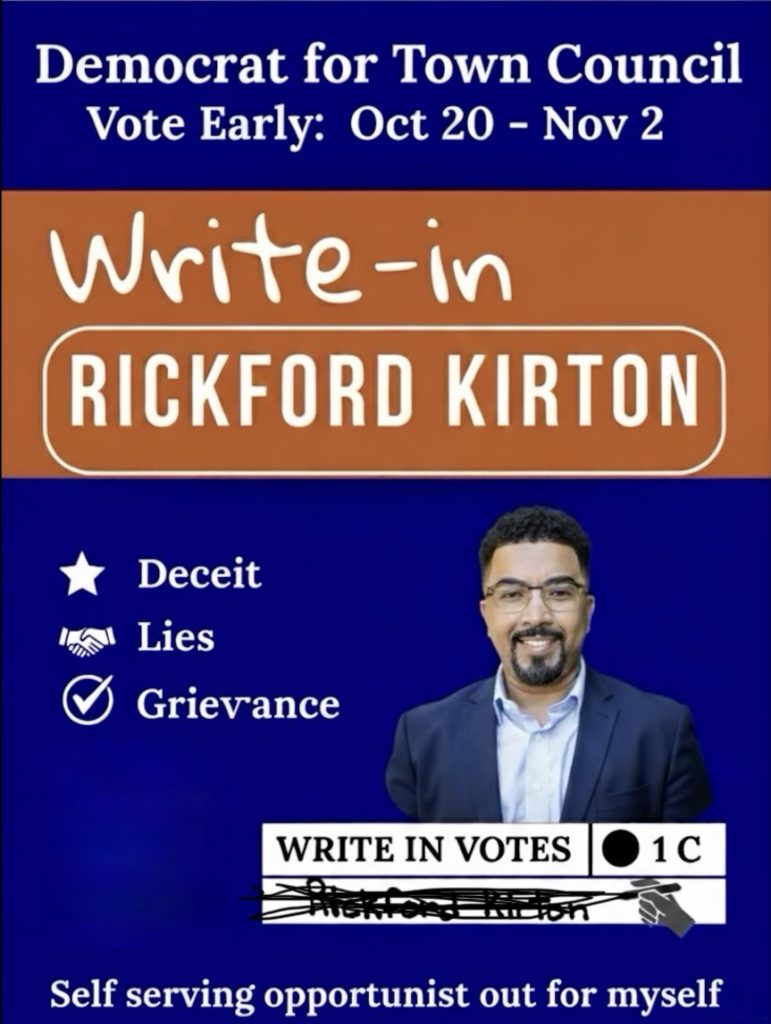 Rickford Kirton’s latest maneuver floating a write-in bid while courting Republican votes looks less like principled independence and more like a calculated end-run around his own party. He brands himself a Democrat, but his playbook leans on the same anti-establishment theatrics and grievance politics that define Trump-era campaigning, minus the honesty to own the ideological shift.